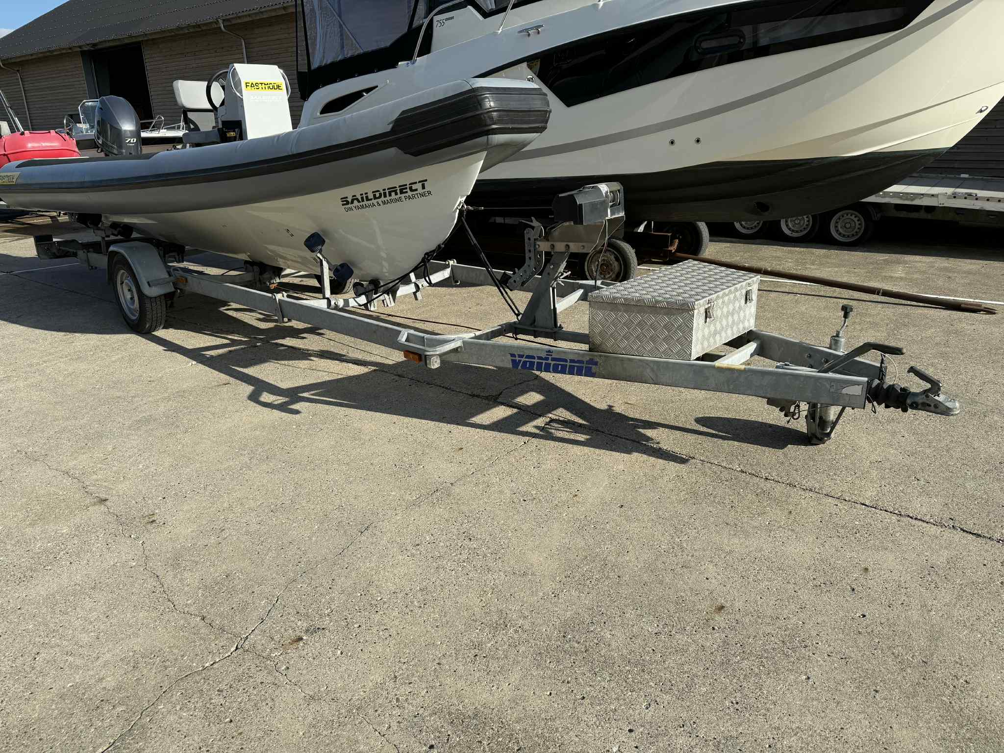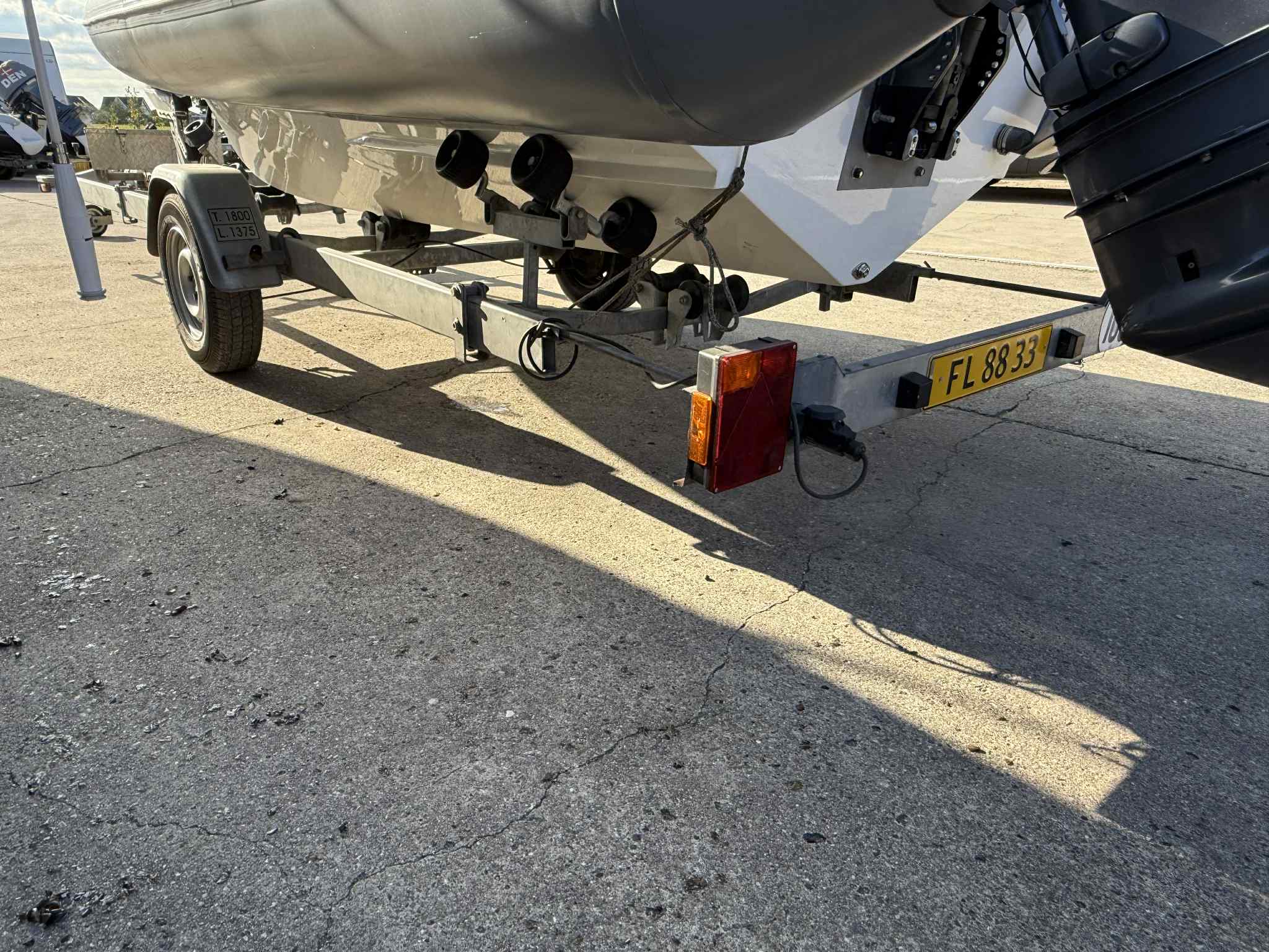 1800 kg. Variant bådtrailer sælges. 1800 BB model, med ekstra sideruller og ekstra lang model. Bedst til både på minimum 6 meter. Traileren er med 13 polet trailer-stik. Den er med superwinch el-spil. Der sidder en stor robust opbevaringskasse i fronten på den. Kan tage både op til 23 fod og 1374 kg. Traileren er TEMPO 100 godkendt. Sidste syn var: 12/09-2024. (Skal ikke synes ved omregistrering) Årlig ejerafgift: 362 kr. Årgang: 2005 Prisen er inkl. nummerplade. Skal om-registreres ved afhentning. Lygteglas på højre baglygte bliver skiftet inden salg. Båden på traileren medfølger ikke. Kan ses hos Saildirect i Kolding.